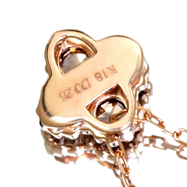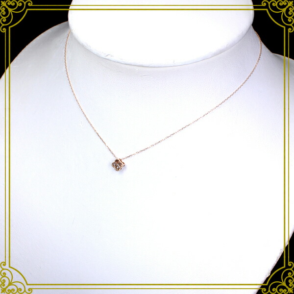 | 素材…K18ピンクゴールド 脇石…ダイヤモンド Total 0.25ct チェーン長さ…約45cm(スライドアジャスター付) チェーン太さ…約0.5mm 寸法…約7.2mmx7.2mm 厚み…約3.6mm チェーン取り外し…可 重 さ約1.58g |  |