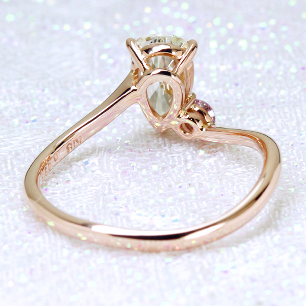 さすが0.8ctアップ…さらにペアシェイプというプロポーションのために、見た目には1ctアップにも匹敵するほどの迫力がございます。