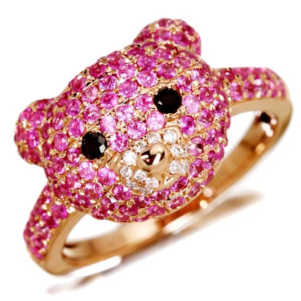 【受注製作 -お客様のご注文で製作いたします-】K18PG ピンクサファイア 1.3ct ダイヤモンド/ブラックダイヤモンド total0.08ct パヴェ リング ベアモチーフ