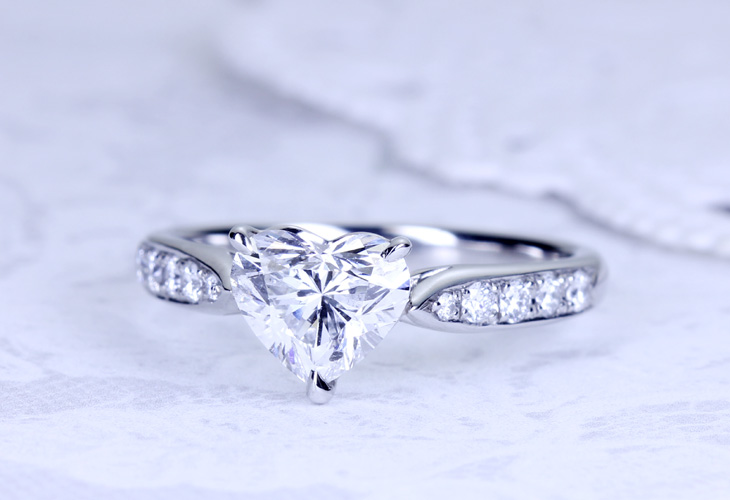 【ハンドメイド】PT900 1.114ct E SI-2 ハートシェイプ ダイヤモンド リング 0.177ct ダイヤモンド ※AGTソーティングシート付
