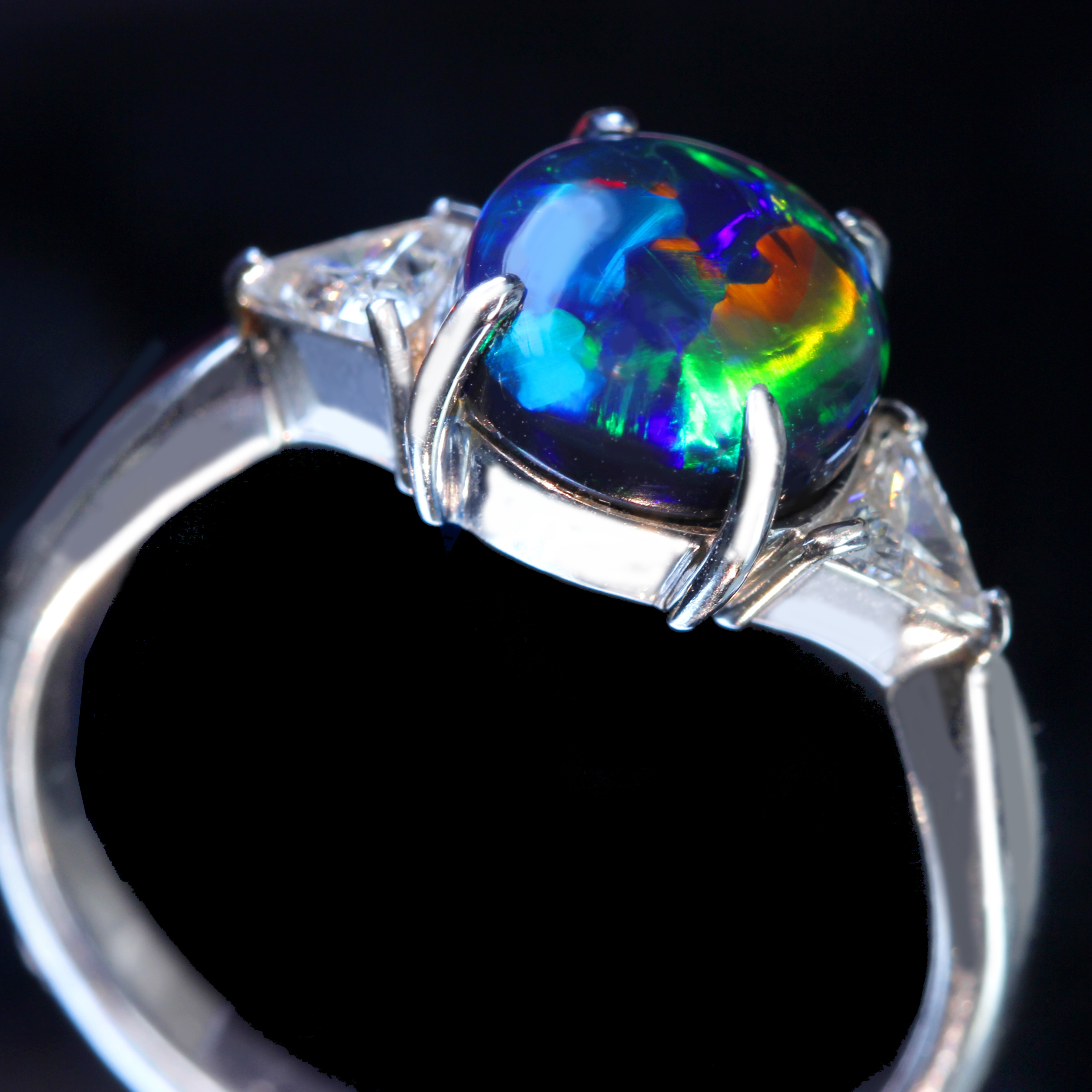 【最高峰】PT900 ブラックオパール 2.23ct ダイヤモンド 0.3ct リング フラッグハーレクイン ブラックオパールキャッツアイ ハイカボション
