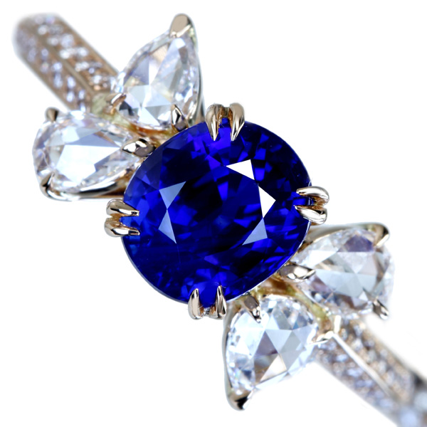【HANDMADE】K18PG 非加熱サファイア 2.05ct ローズカットダイヤモンド 0.763ct 〔GRS Report〕 vivid blue 2ctUP ブルーサファイア ノーヒート