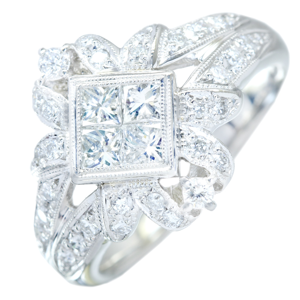 【日替わり大特価】PT900 ダイヤモンド 1.00ct ミステリーセッティング リング VSクラス プリンセス