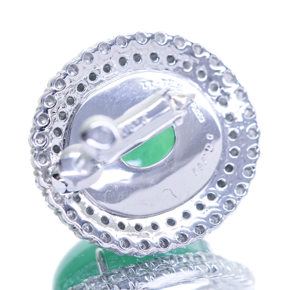 【HANDMADE】Pt950/900 翡翠 10.641ct/11.128ct ダイヤモンド 0.969ct/0.969ct イヤリング
