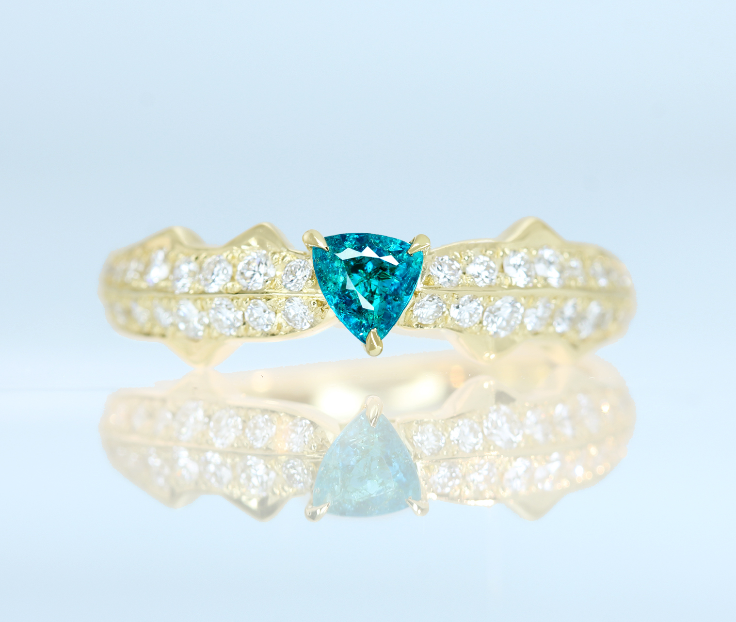 【HANDMADE】【銅含有2.8%UP】K18 ブラジル産パライバトルマリン 0.17ct ダイヤモンド 0.391ct リング トリリアントシェイプ エイトリータ 完璧な青み。