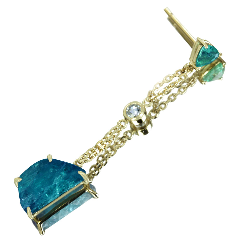 【PARAIBA MUSEUM】【HANDMADE】オールドマイン K18 パライバトルマリン 原石 2.845ct/2.445ct パライバトルマリン 0.253ct/0.211ct ダイヤモンド ローズカット 0.047ct/0.046ct ピアス