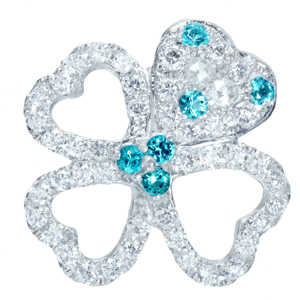 《PARAIBA MAGIC!》【HANDMADE】 PT950 ブラジル産パライバトルマリン 0.101ct ダイヤモンド 0.404ct ペンダントトップ クローバーモチーフ ローズカット