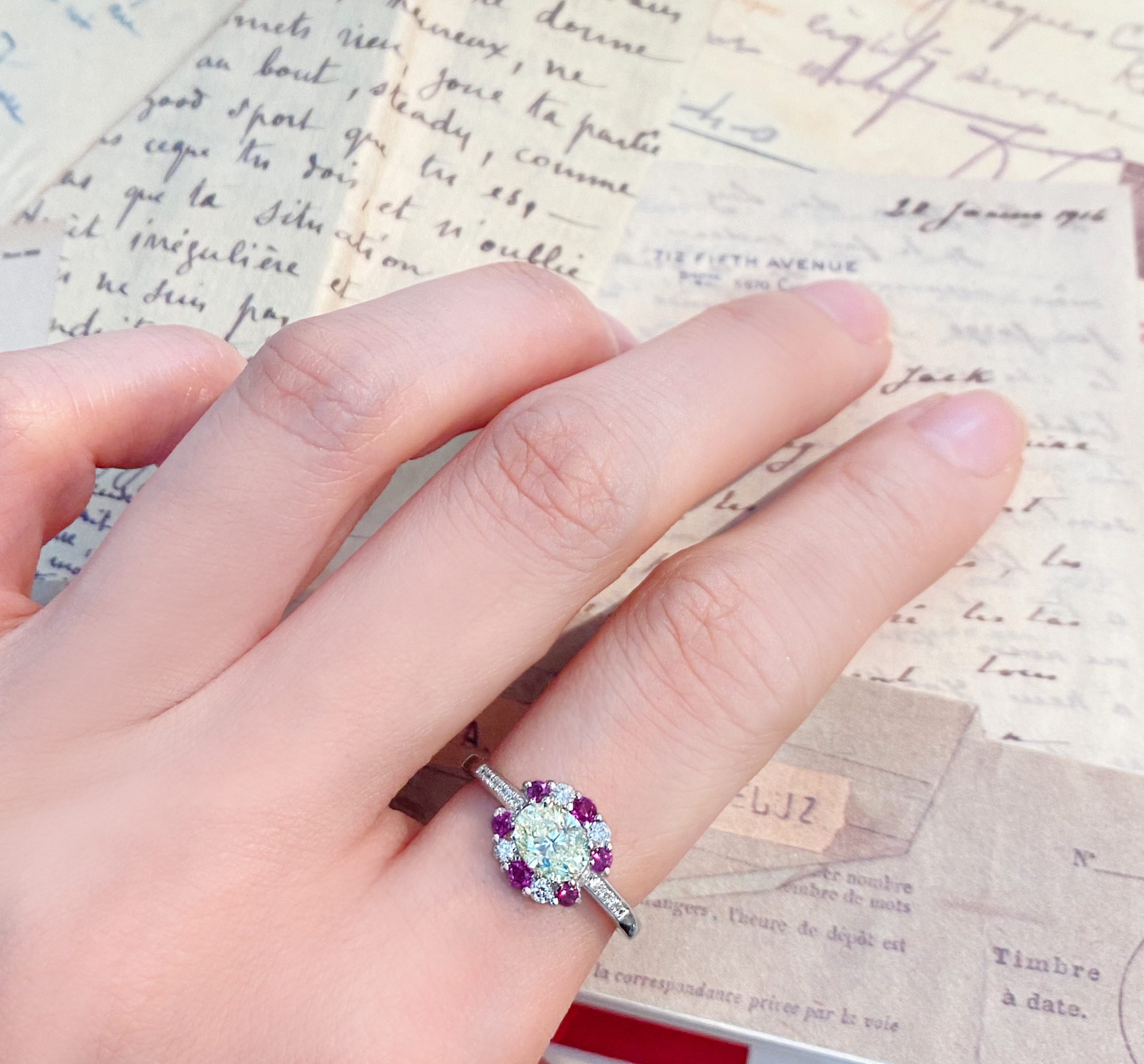 PT900 イエローダイヤモンド 0.564ct ルビー 0.18ct ダイヤモンドメレ 0.12ct リング