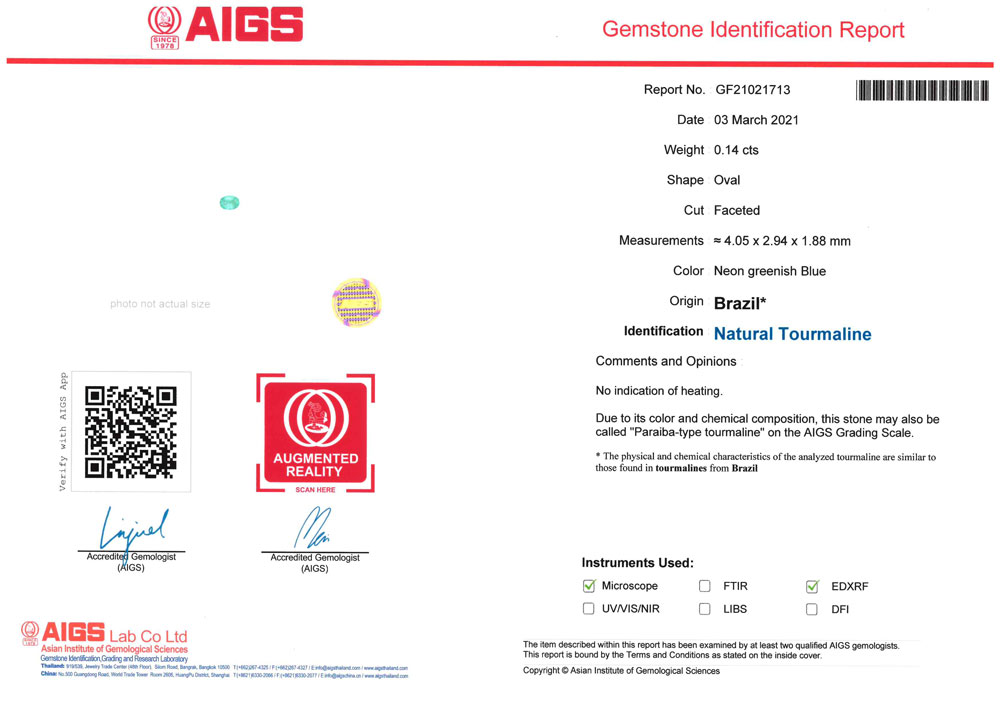 ブラジル産非加熱パライバトルマリン 0.14ct。