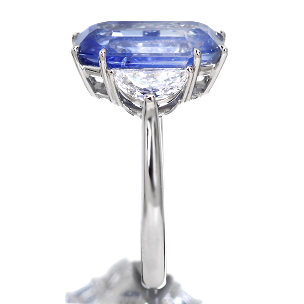 神秘的にエメラルドカットのスタイルの中を反射する、麗しい様相は、確かにカシミールサファイア独特の美しさを奏でるもの。