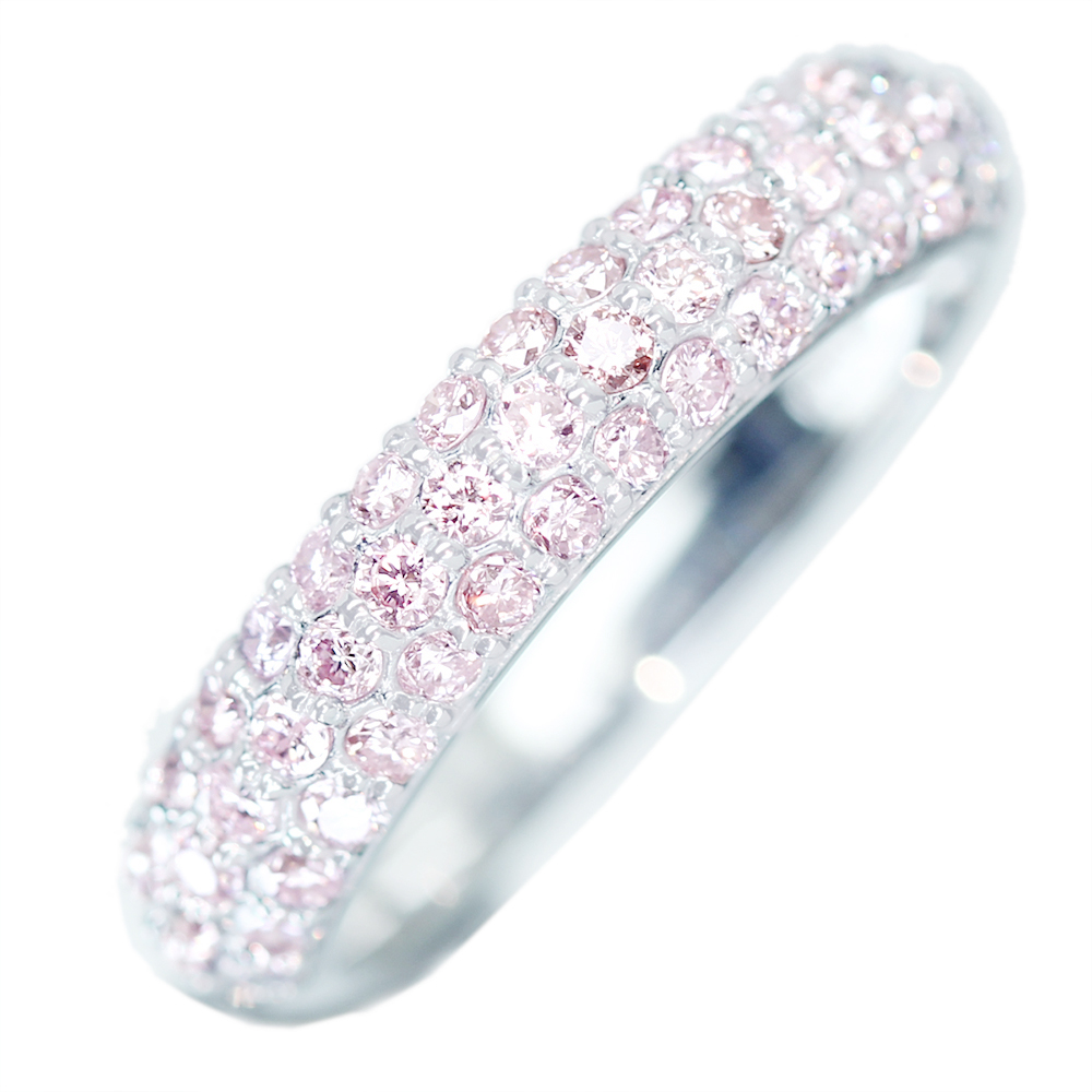 なめらかな曲線にピンクダイヤモンドがびっしりとそろっている様子は