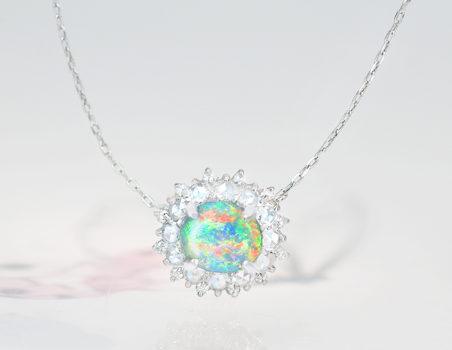 【 BLACK OPAL MUSEUM 完売!】【HANDMADE】PT950 ブラックオパール 0.672ct ダイヤモンド 0.248ct ネックレス ローズカットダイヤモンド[NGL]