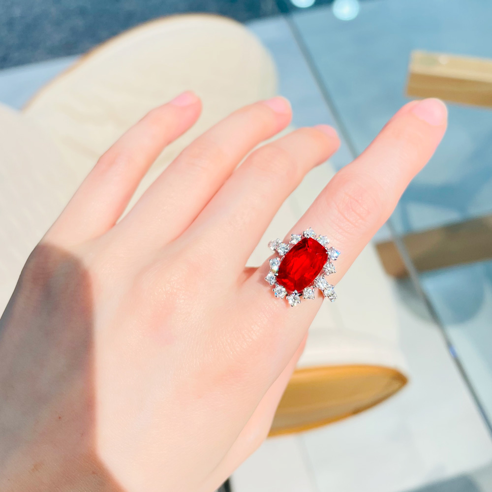 周りを囲うダイヤモンドの真っすぐな煌めきにも