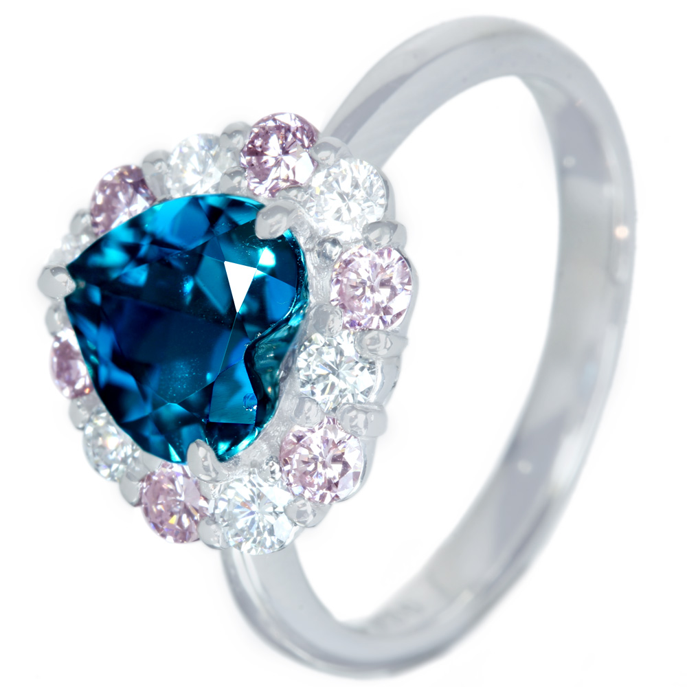 ブラジル産 インディゴライト ナチュラルピンクダイヤモンドリング