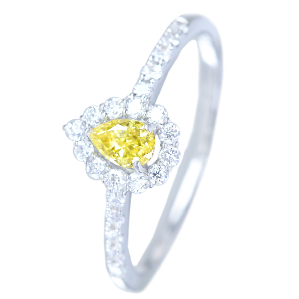 【PRE OWNED】PT900 イエローダイヤモンド 0.254ct ダイヤモンド 0.25ct ペアシェイプ