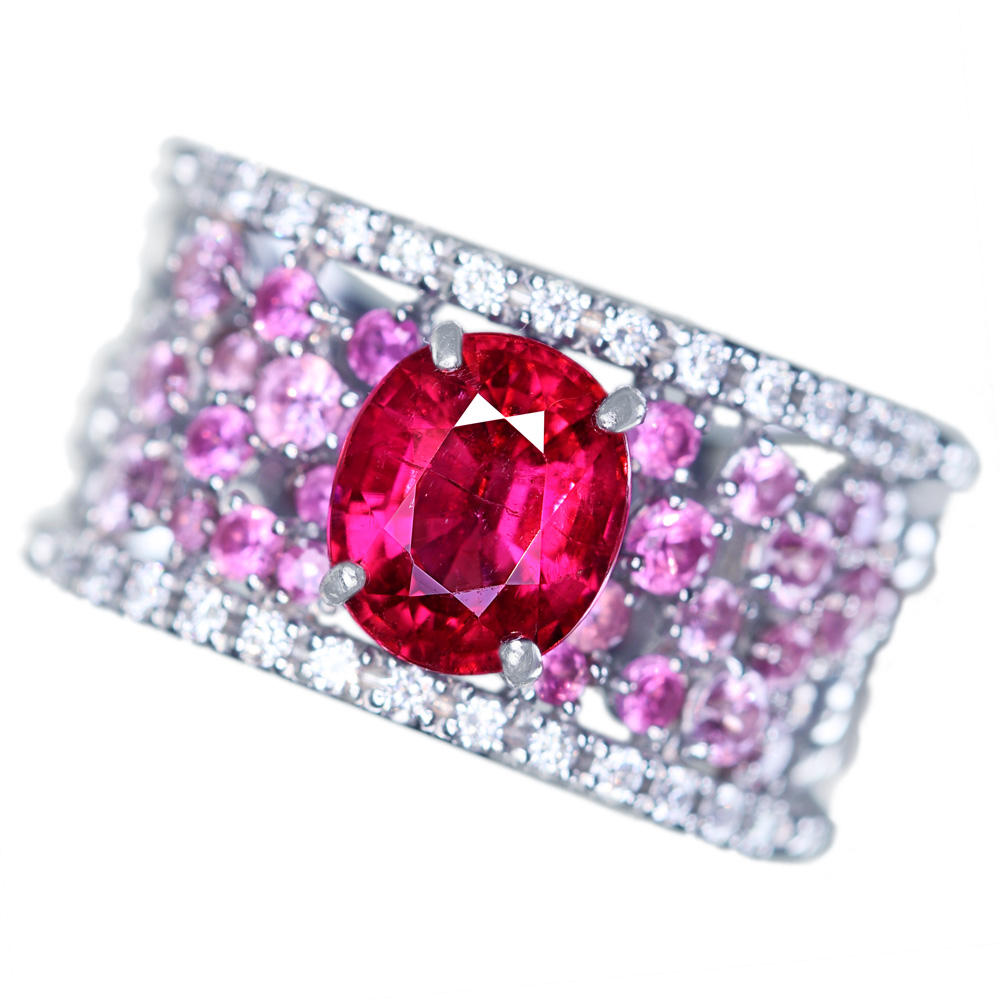 【代行販売】PT900 ルベライト 2.17ct ダイヤモンド 0.27ct リング[中央宝石]