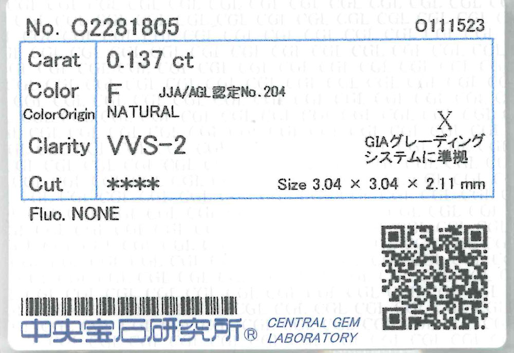 《DIAMOND MARKET》ダイヤモンド F VVS-2 0.137ct ルース フランダースカット [中央宝石研究所]
