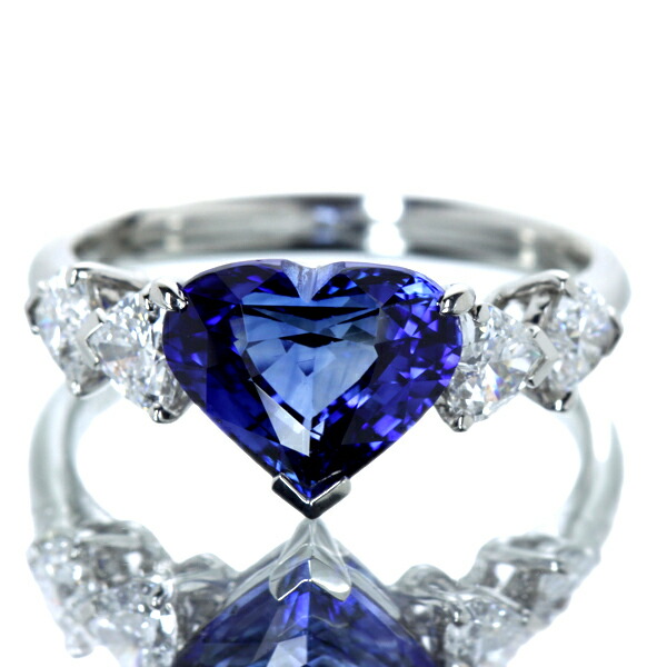【HANDMADE】3ctに迫る!PT 驚くほど鮮やかなブルーの差し込む、ロマンティックなハートのブルーサファイヤリング ハートシェイプカット D 0.646ct