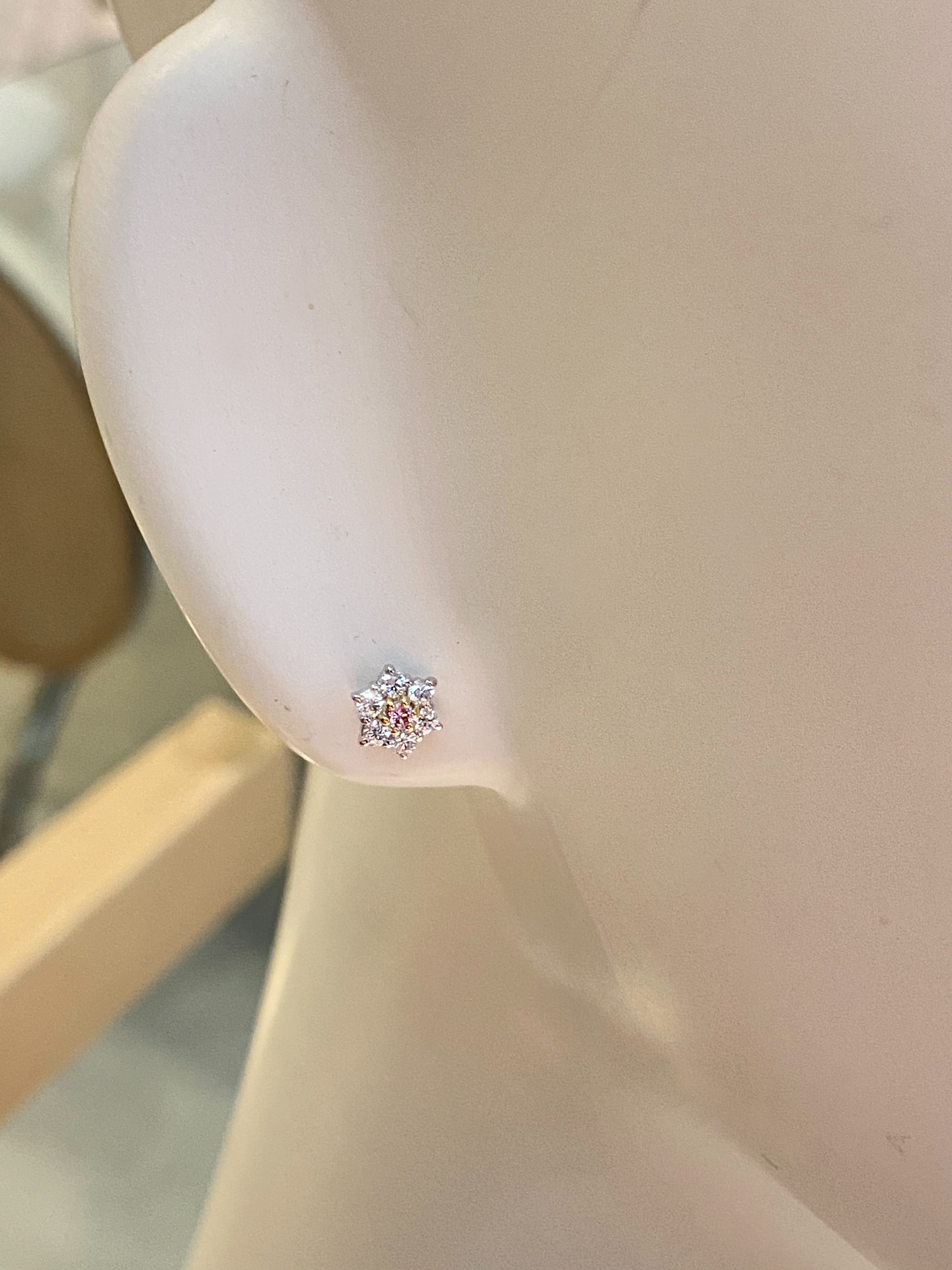 【新作特別価格!】【HANDMADE】PT950/K18 天然ピンクダイヤモンド FANCY PINK ダイヤモンド ピアス フラワーモチーフ[中央宝石研究所]
