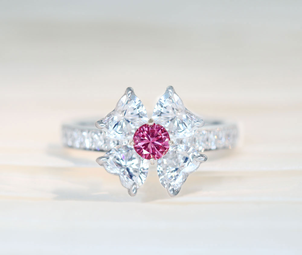 《100年引き継がれるジュエリーを ハンドメイドジュエリー展》完売! HANDMADE】PT950 K18PG ピンクダイヤモンド FANCY INTENSE PINK SI-1 ダイヤモンド 0.766ct リングハートシェイプ[CGL]
