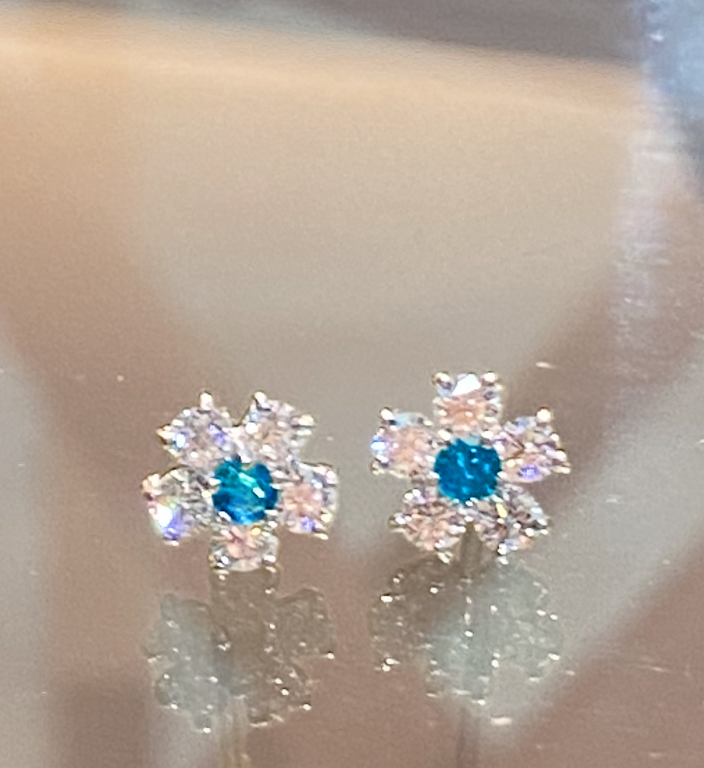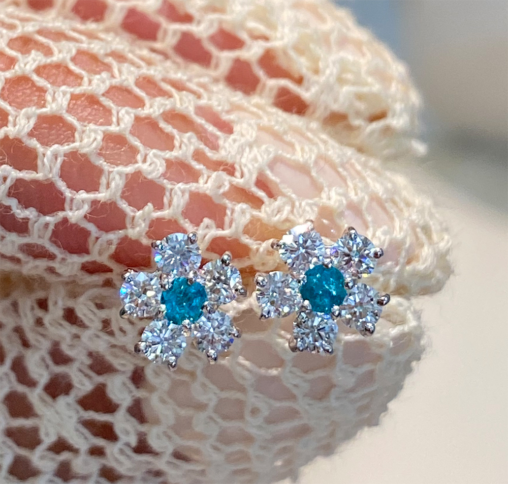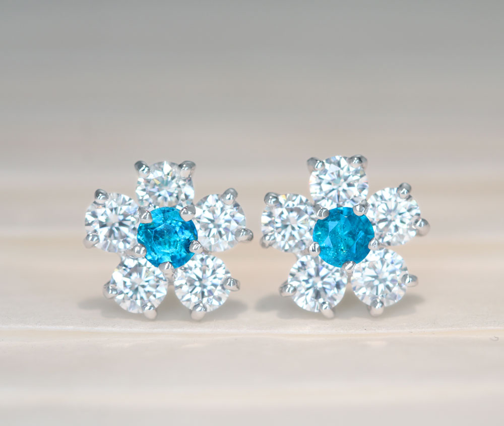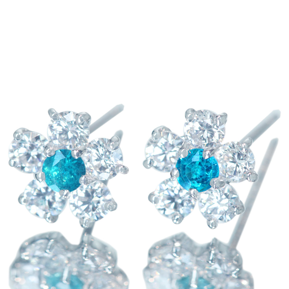 【HANDMADE】PT900 ブラジル産パライバトルマリン 0.116ct ダイヤモンド 0.55ct ピアス フラワーモチーフ