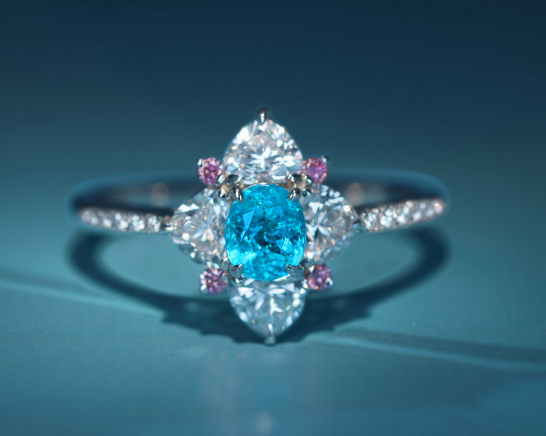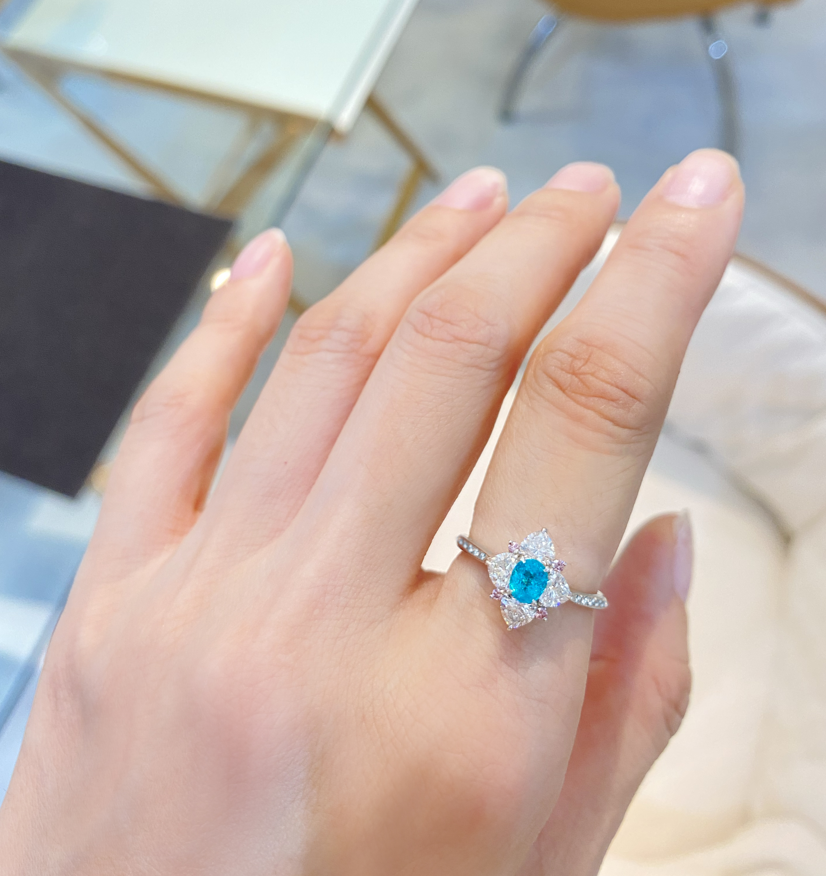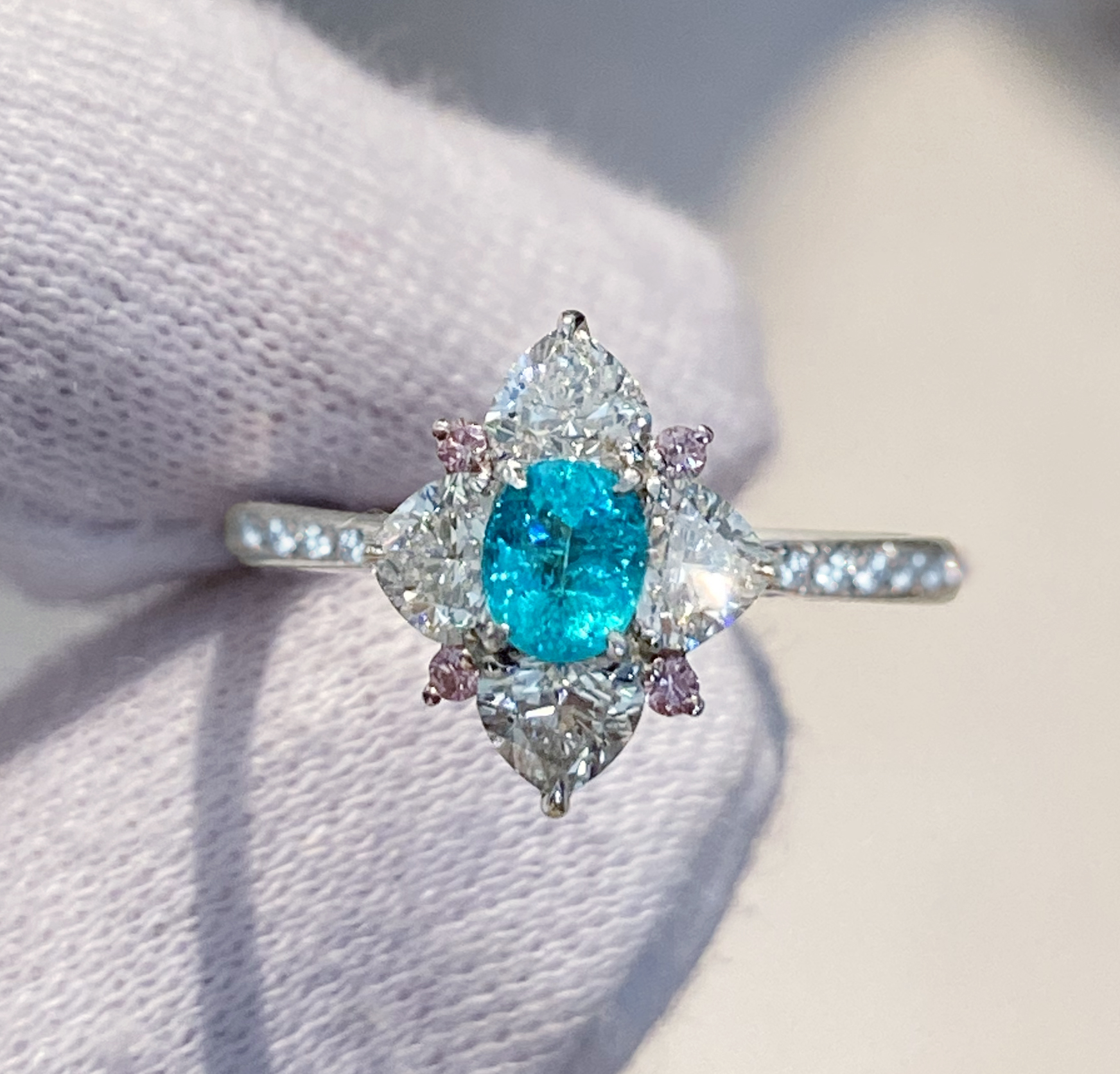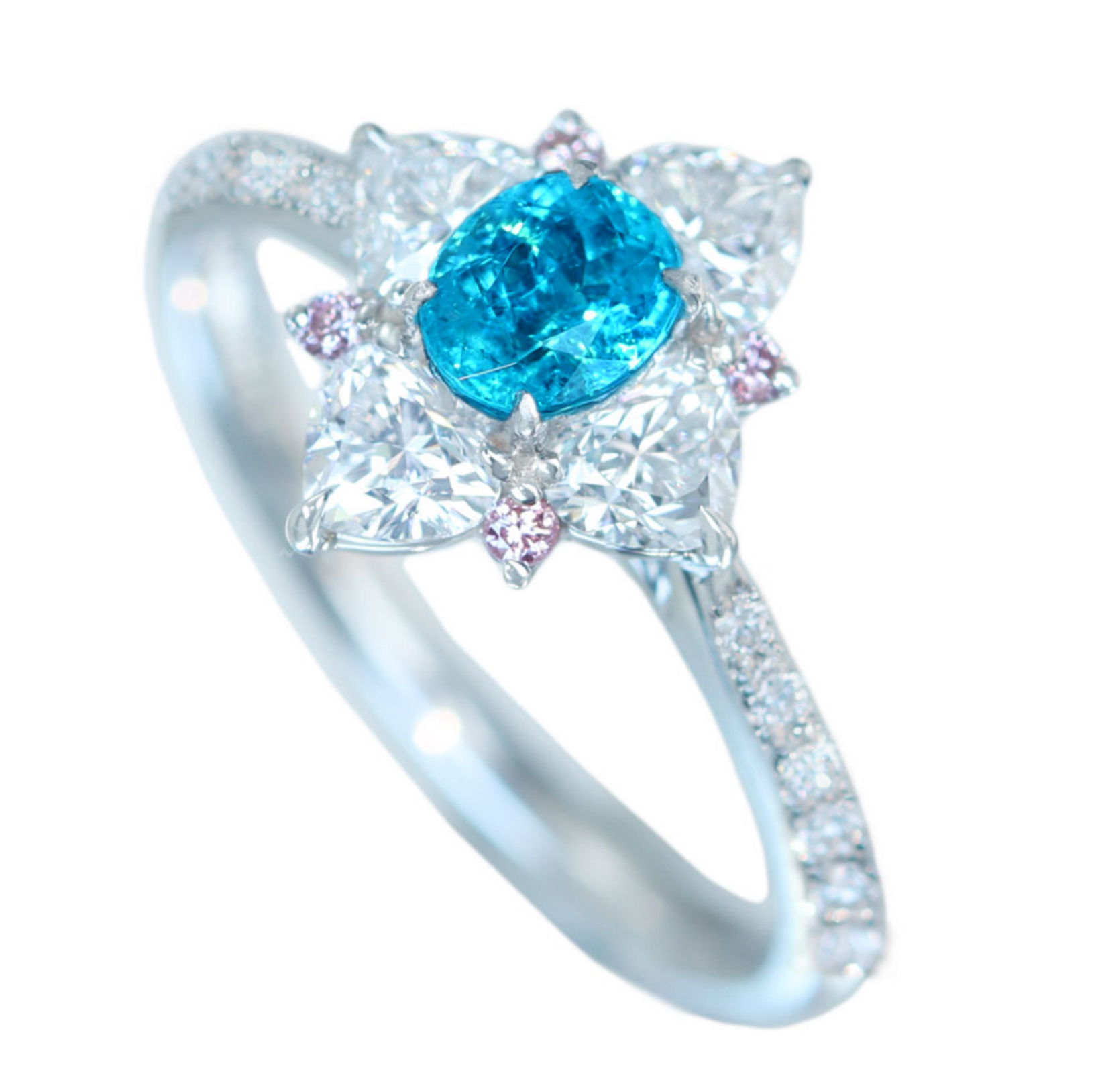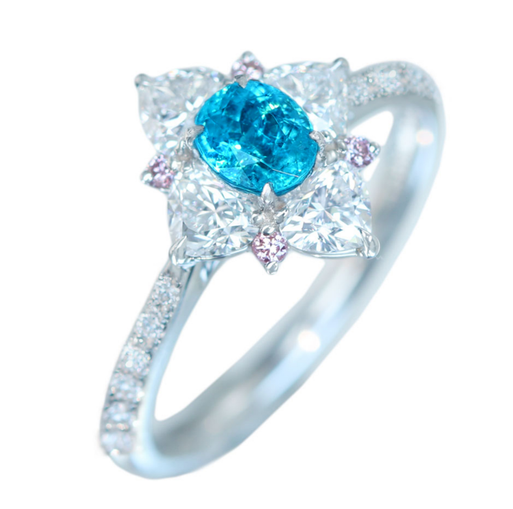 《100年引き継がれるジュエリーを- ハンドメイドジュエリー展》【HANDMADE】PT950 ブラジル産パライバトルマリン 0.36ct ピンクダイヤモンド ダイヤモンド 0.744ct リング