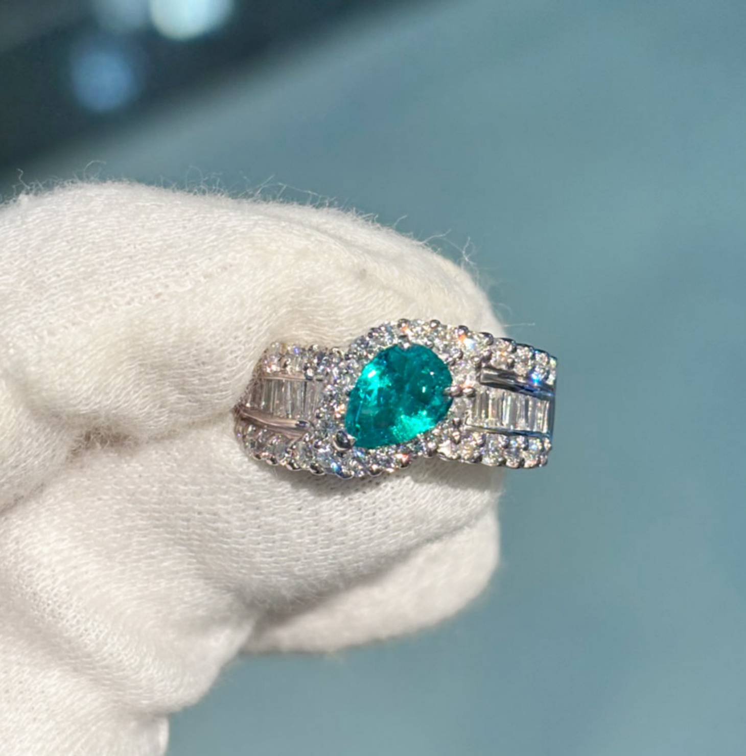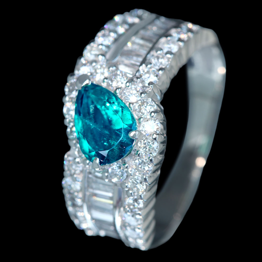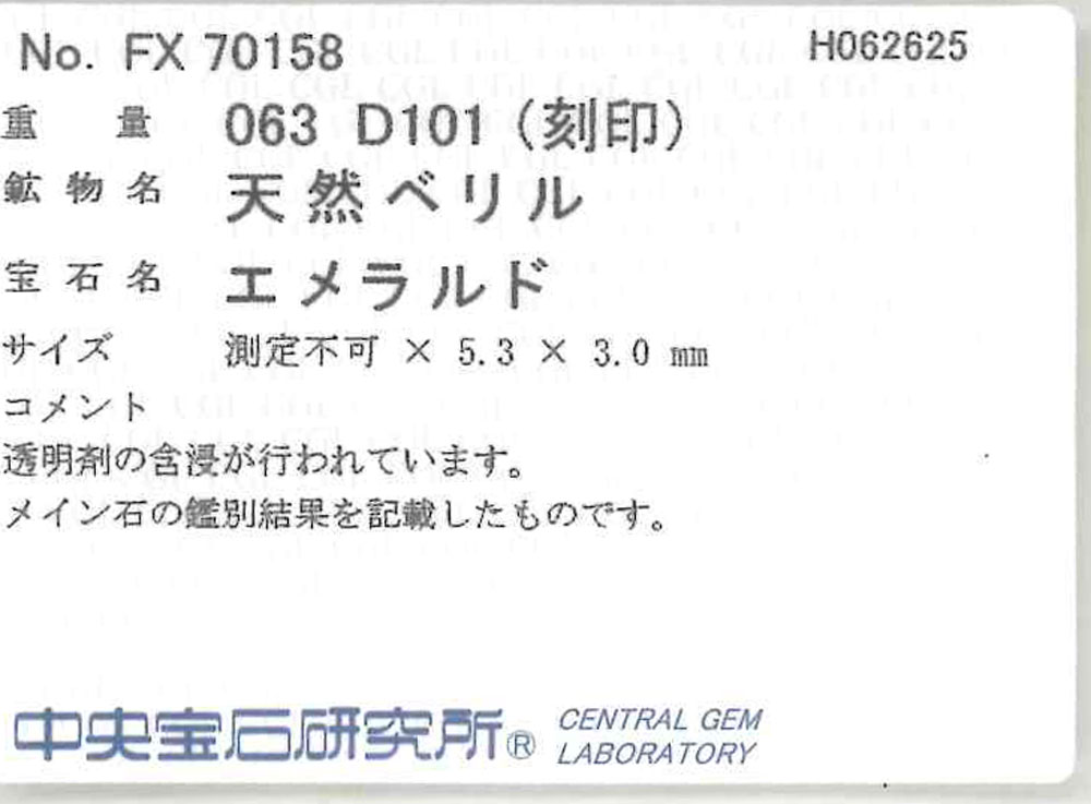 PT900 エメラルド 0.63ct ダイヤモンド 1.01ct リング ペアシェイプ[中央宝石研究所]