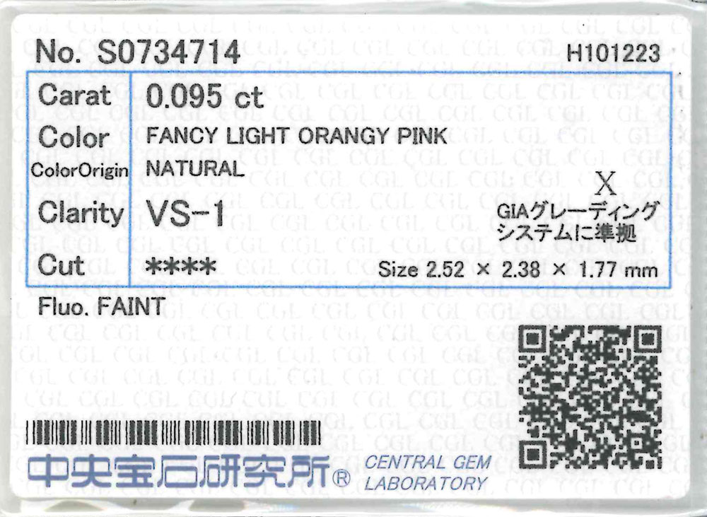 FANCY LIGHT ORANGY PINK VS-1 0.095 ct