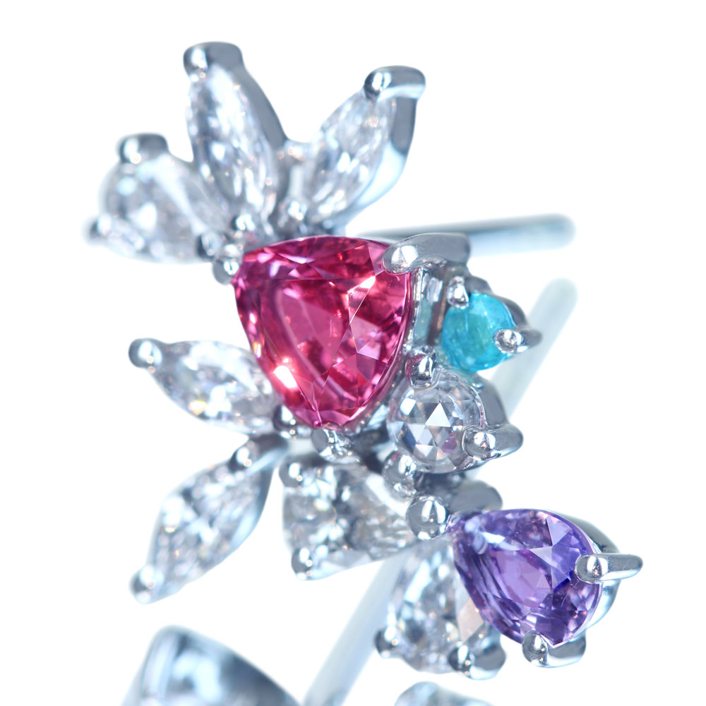 【代行販売】K18WG ピンクスピネル 0.9ct パライバトルマリン パープルサファイヤ ダイヤモンド ピアス