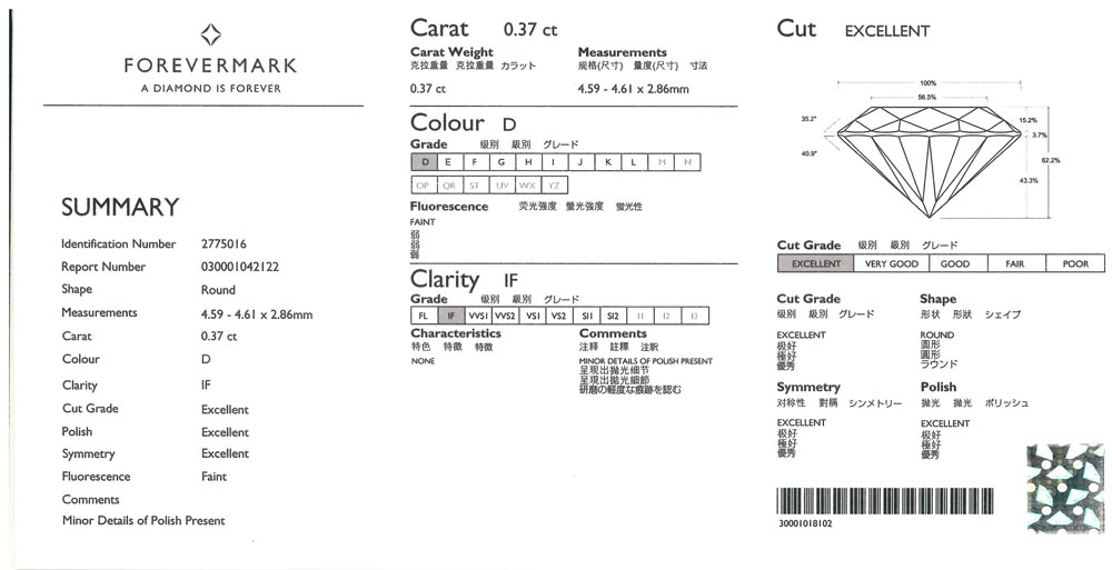 【代行販売】PT900 D IF 3EX ダイヤモンド 0.370ct ピンクダイヤモンド リング フルオーダー フォーエバーマーク[鑑定書付]