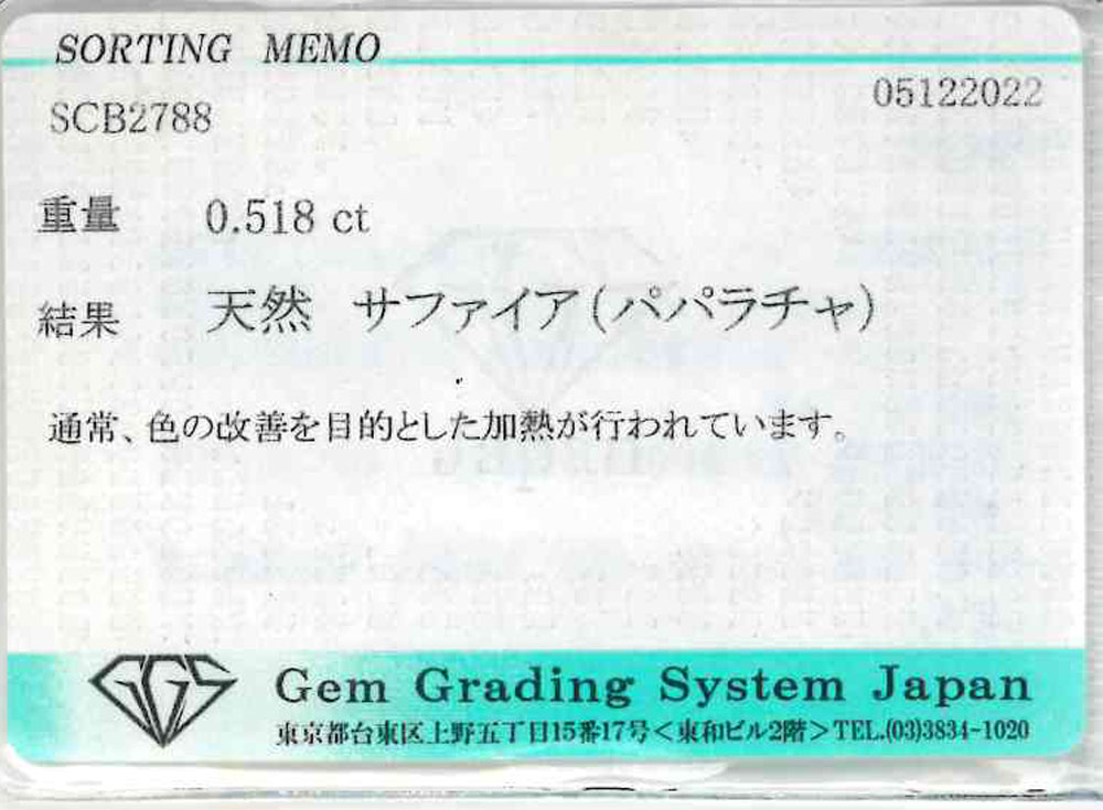 パパラチャサファイア 0.518ct