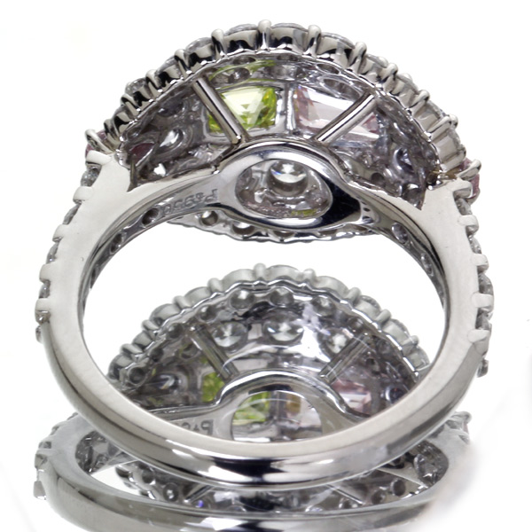 【HANDMADE】カラーダイヤモンドリング 1.256ct/1.84ct FANCY PINK VS2 0.67ct/FANCY INTENSE GREEN-YELLOW 0.58ct PT950[GIA/中央宝石研究所]