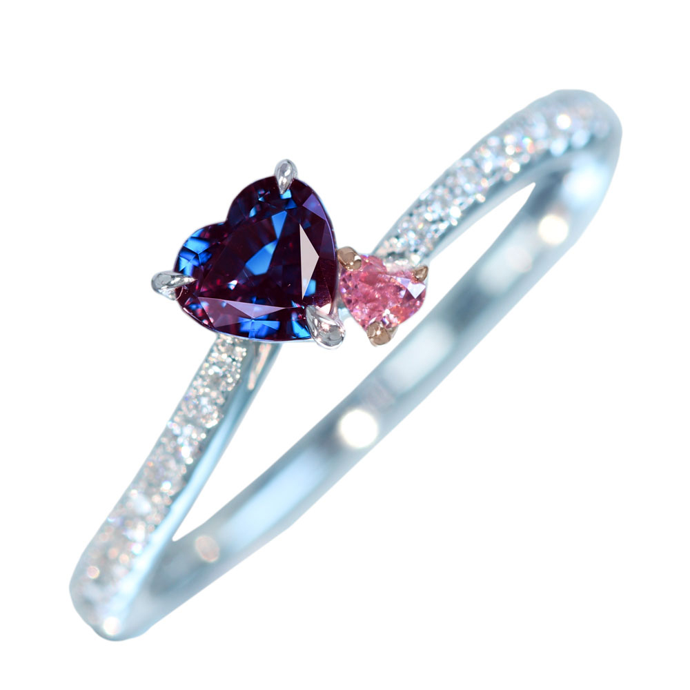 このアレキサンドライトとピンクダイヤモンドに