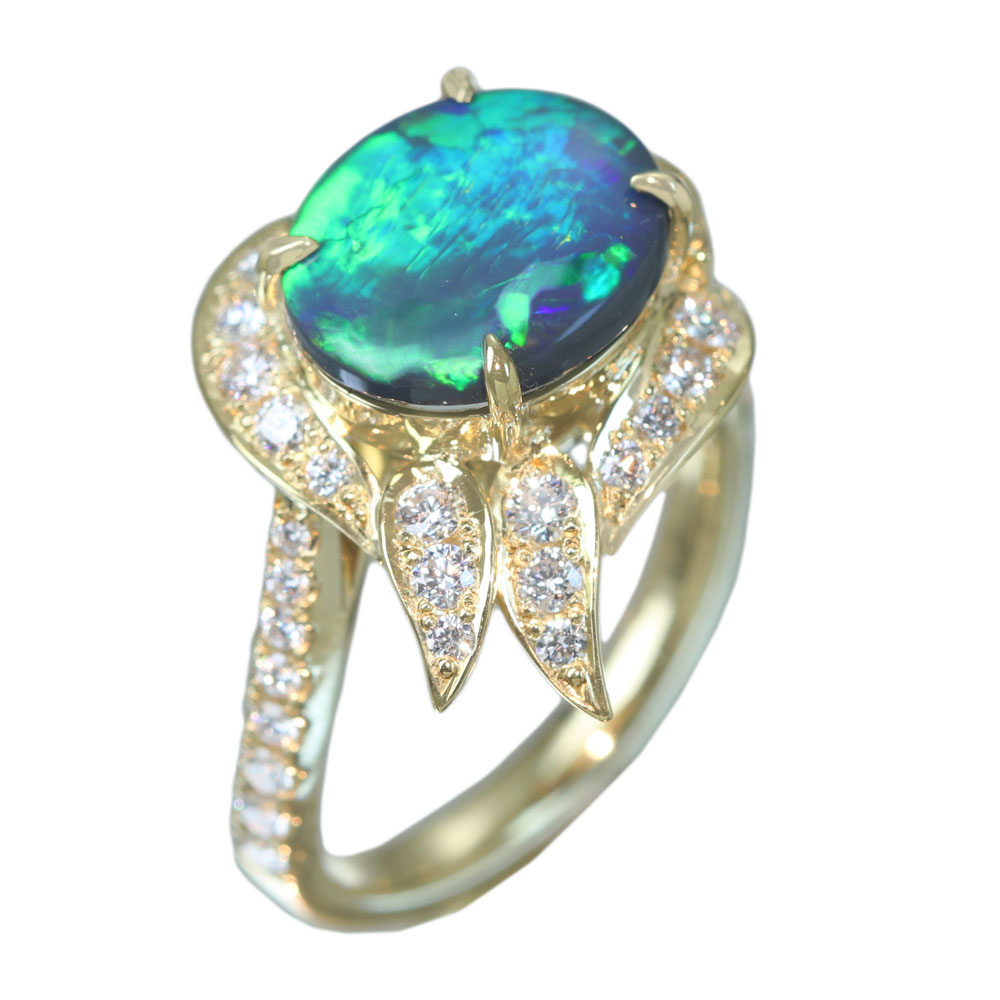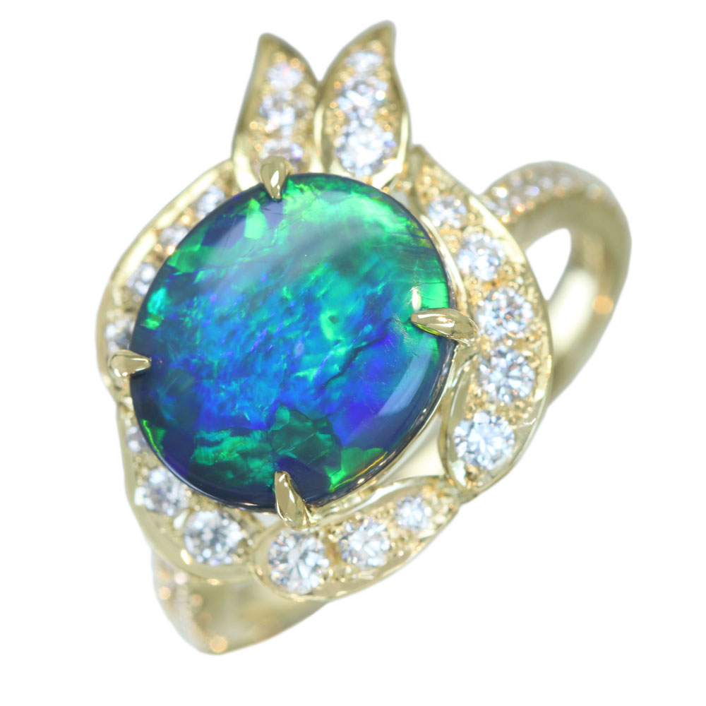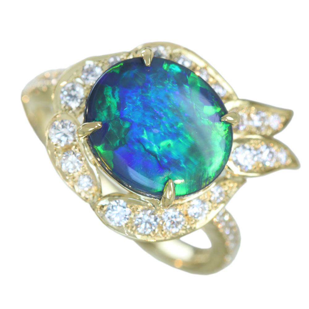 《100年引き継がれるジュエリーを- ハンドメイドジュエリー展》【HANDMADE】K18 ブラックオパール 2.36ct ダイヤモンド 0.579ct リング