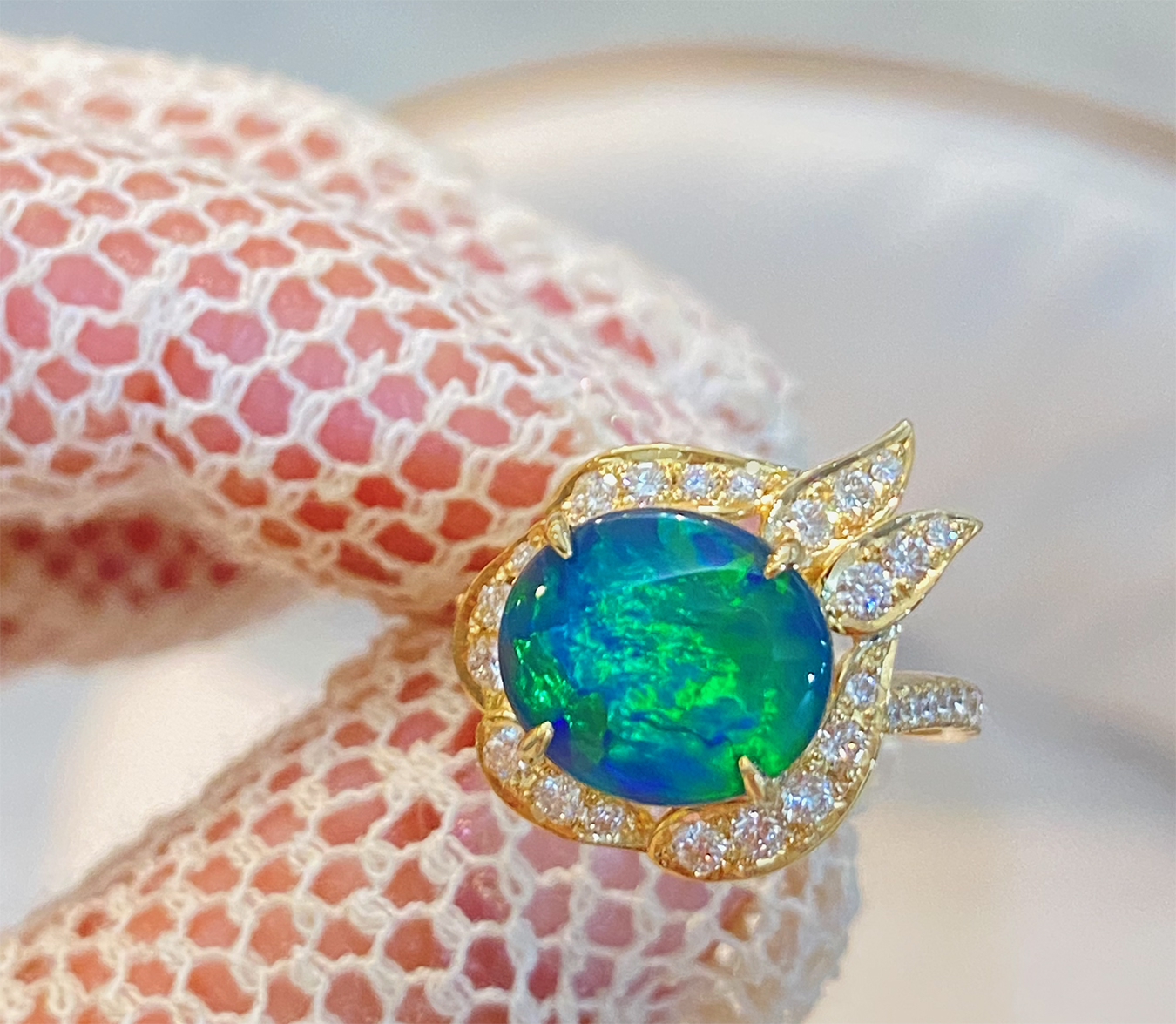ブラックオパールを包み込むように