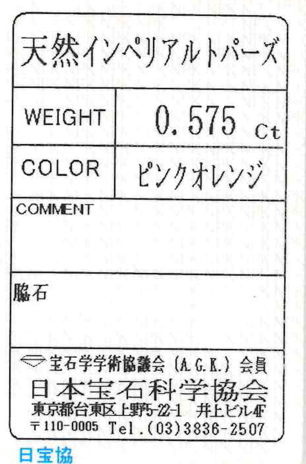 インペリアルトパーズ 0.575ct