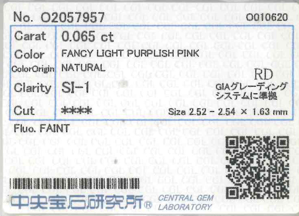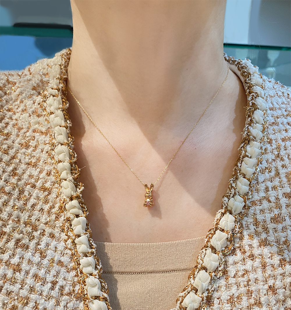 【HANDMADE】K18PG 天然ピンクダイヤモンド FANCY LIGHT PURPLISH PINK SI1 ダイヤモンド ペンダントトップ うさぎ[中央宝石研究所]