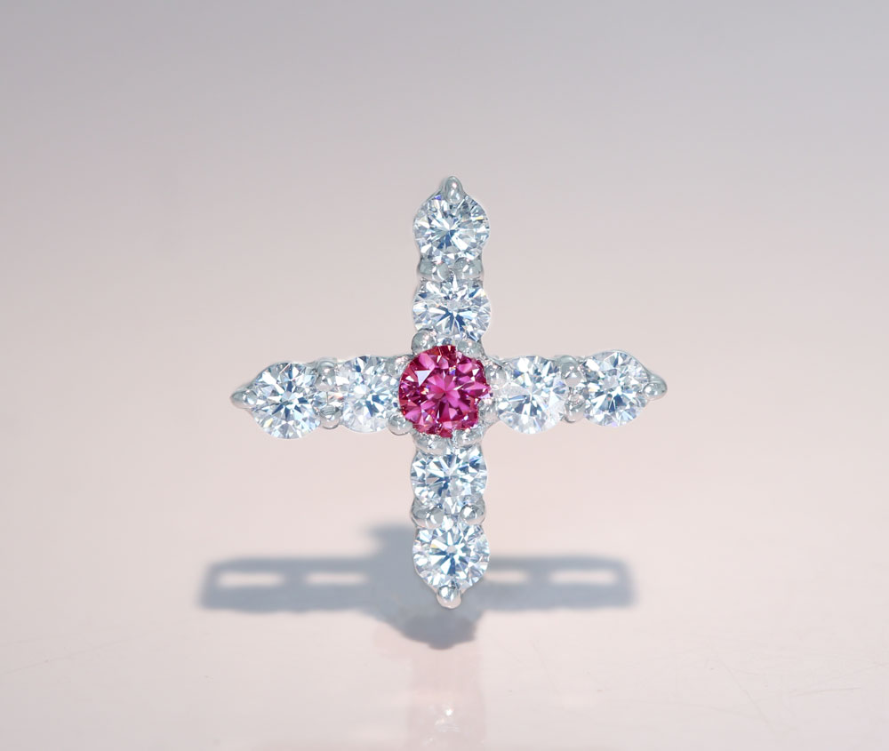 【代行販売】【HANDMADE】Pt950 ピンクダイヤモンド FANCY INTENSE PURPLISH PINK I-1 0.060ct ダイヤモンド 0.269ct ペンダントトップ クロスモチーフ