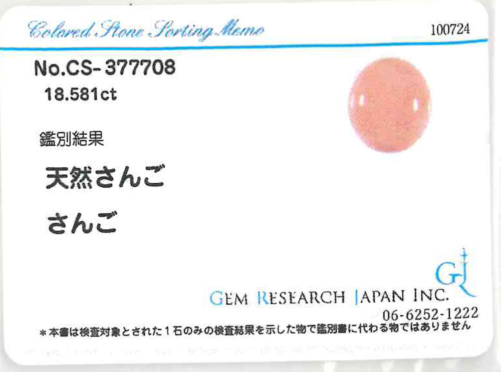 珊瑚 18.581ct ルース[ソーティング付]