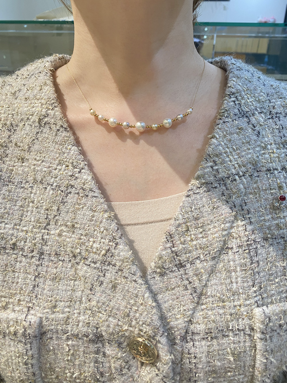 ゴールドとパールのネックレス。
