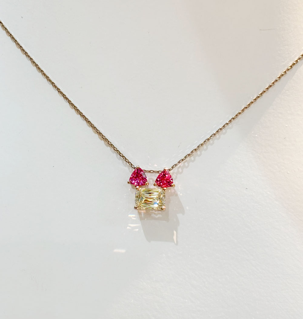 特別価格!【HANDMADE】1ctUP!!K18PG イエローダイヤモンド アショカ 1.01ct ホットネオンピンクスピネル 0.5ct ペンダントトップ 猫 ねこ CAT