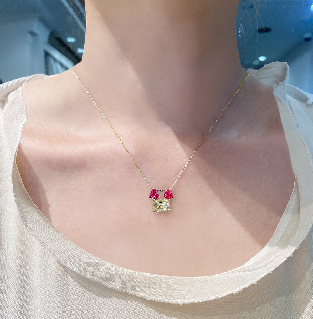 特別価格!【HANDMADE】1ctUP!!K18PG イエローダイヤモンド アショカ 1.01ct ホットネオンピンクスピネル 0.5ct ペンダントトップ 猫モチーフ