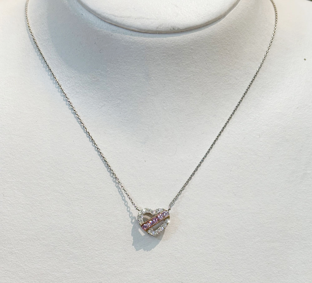 【HANDMADE】 PT950/K18PG 天然ピンクダイヤモンド ダイヤモンド ネックレス ハートモチーフ