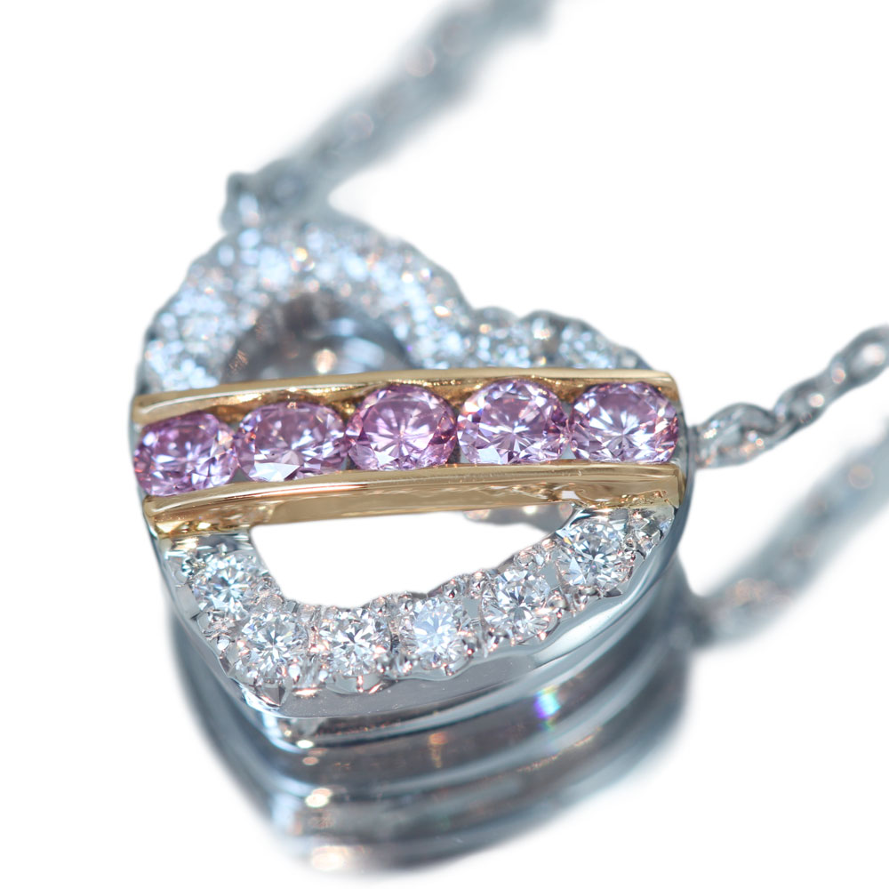 5石のピンクダイヤモンドの凛とした美しい輝きを楽しんでいただけるネックレス。