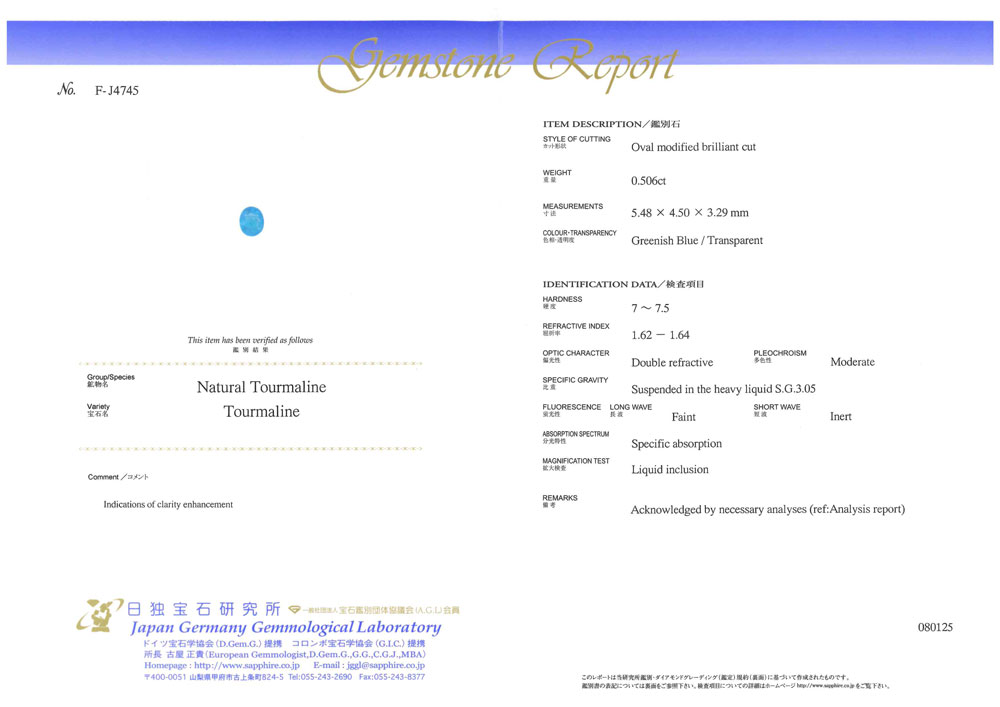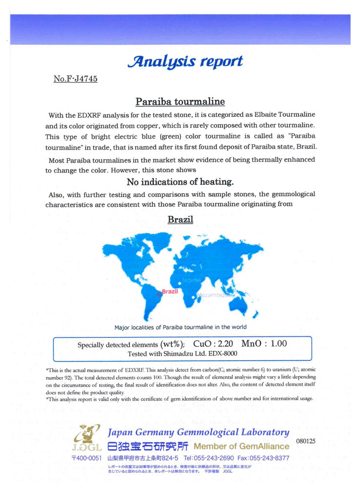 コレクターズロット【代行販売】 ブラジル産非加熱パライバトルマリン 0.506ct 銅含有2.20% ルース[日独鑑別]