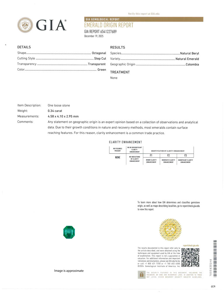 《特選!フローレス!完璧ノンオイル。奇跡の品質》フローレス コロンビア産 ノンオイル エメラルド 0.34ct ルース [GIA]