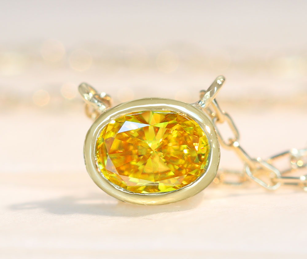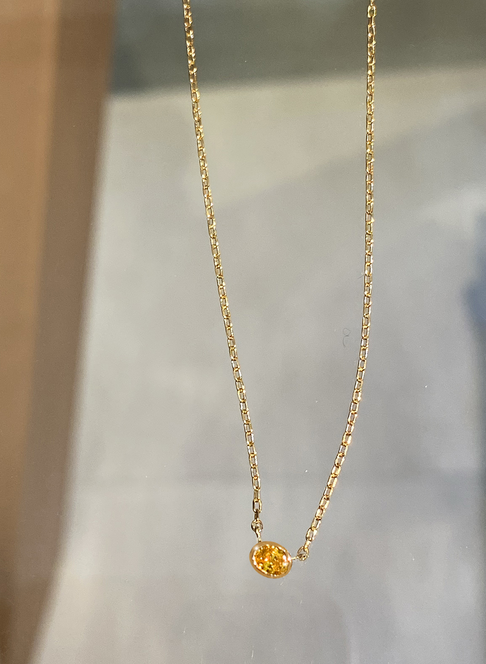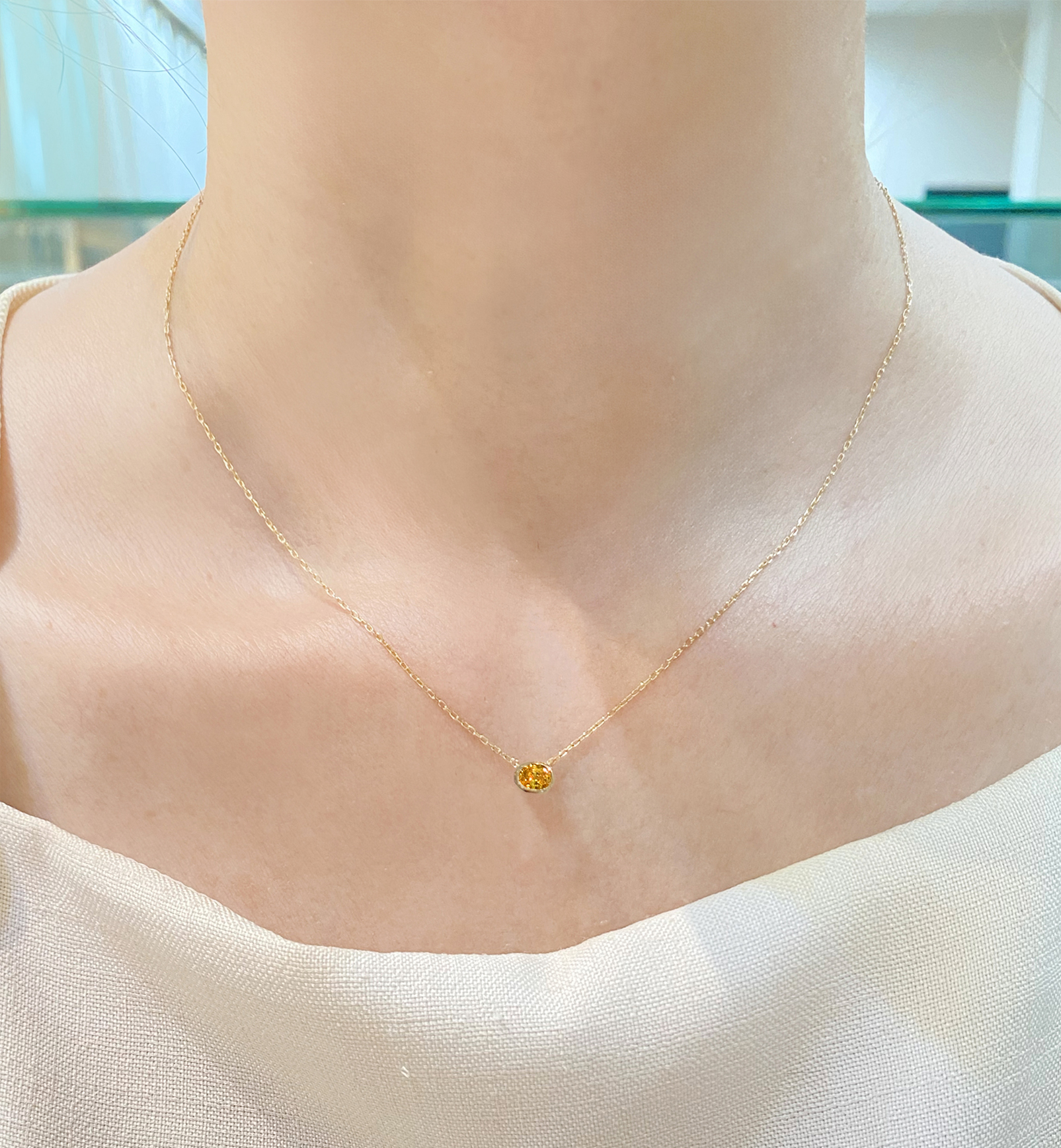 ヴィヴィッドイエローの一粒ネックレス。