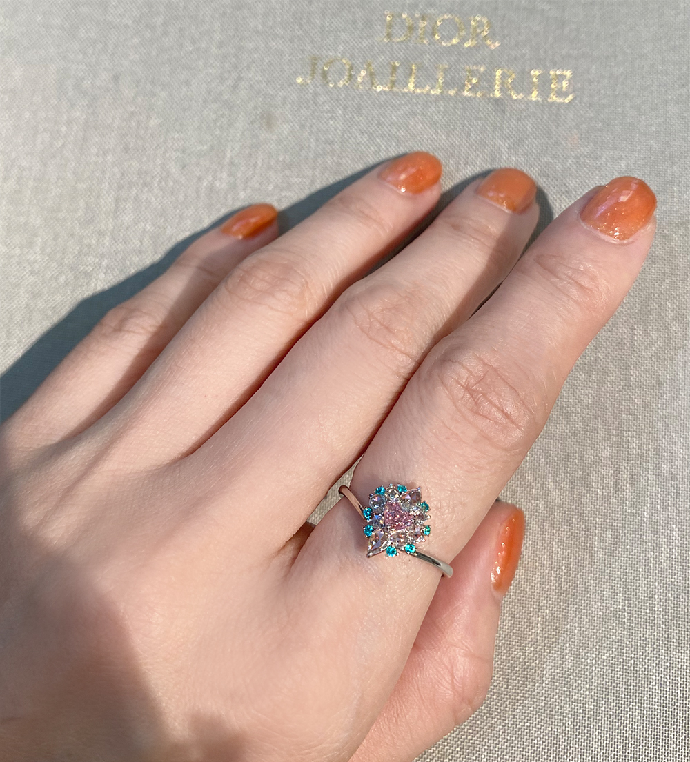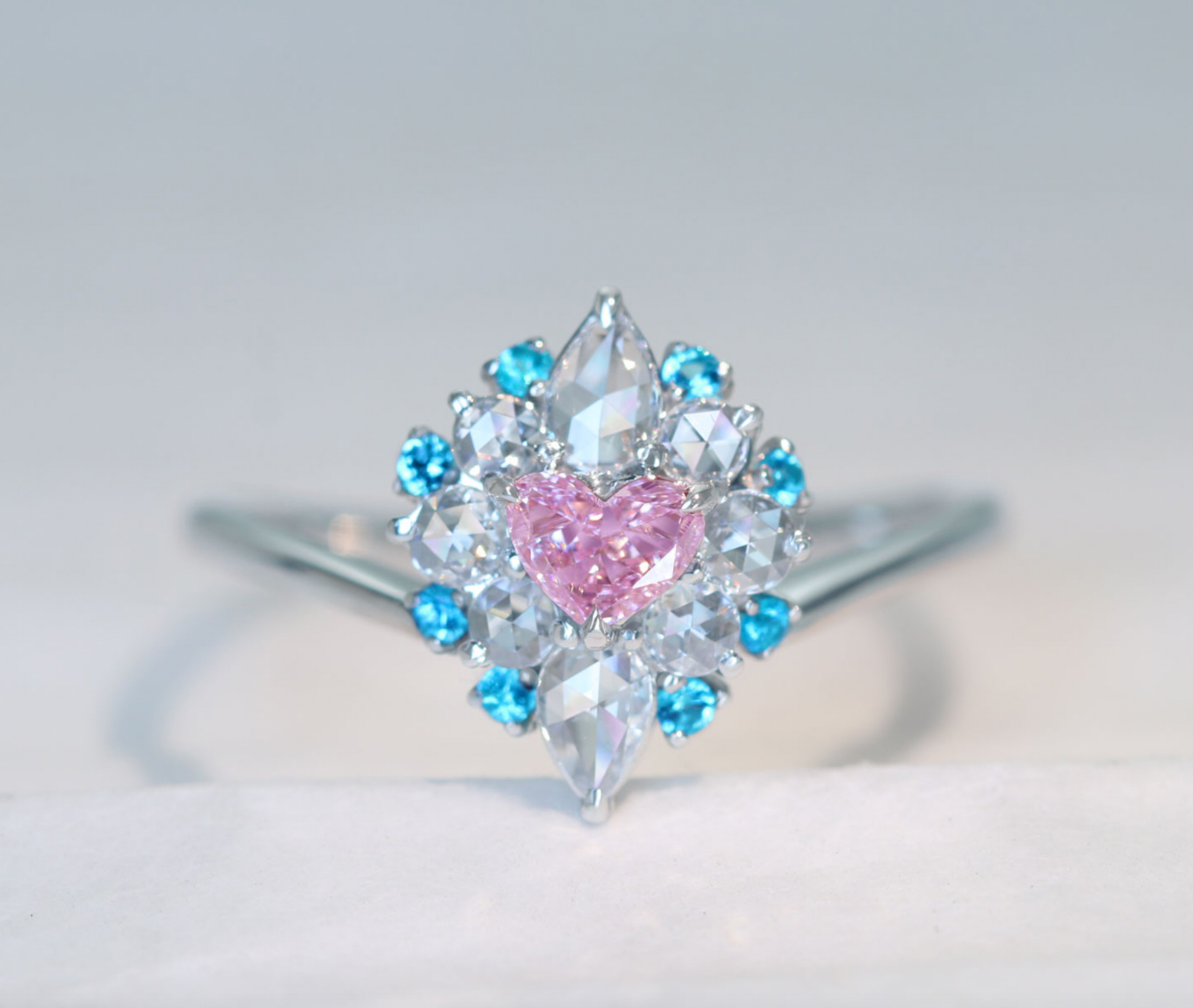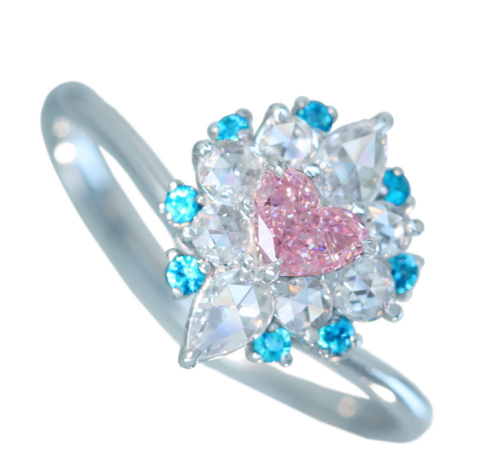 《100年引き継がれるジュエリーを- ハンドメイドジュエリー展》【HANDMADE】PT950 ピンクダイヤモンド FANCY LIGHT PURPLISH PINK 0.132ct ローズカットダイヤモンド total0.251ct パライバトルマリン total0.062ct リング[中央宝石研究所]