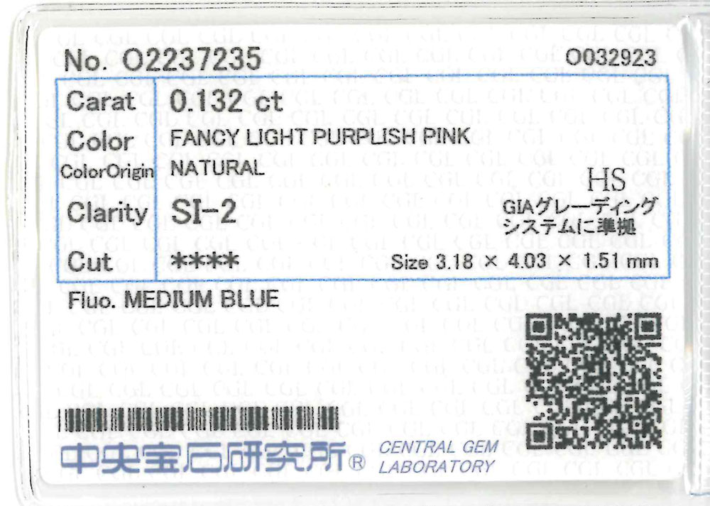 FANCY LIGHT PURPLISH PINK SI2 0.132ct