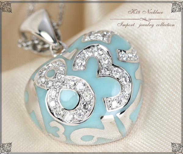 【受注製作 -お客様のご注文で製作いたします-】ダイヤモンドWGぷっくりハート・エナメルナンバーネックレス